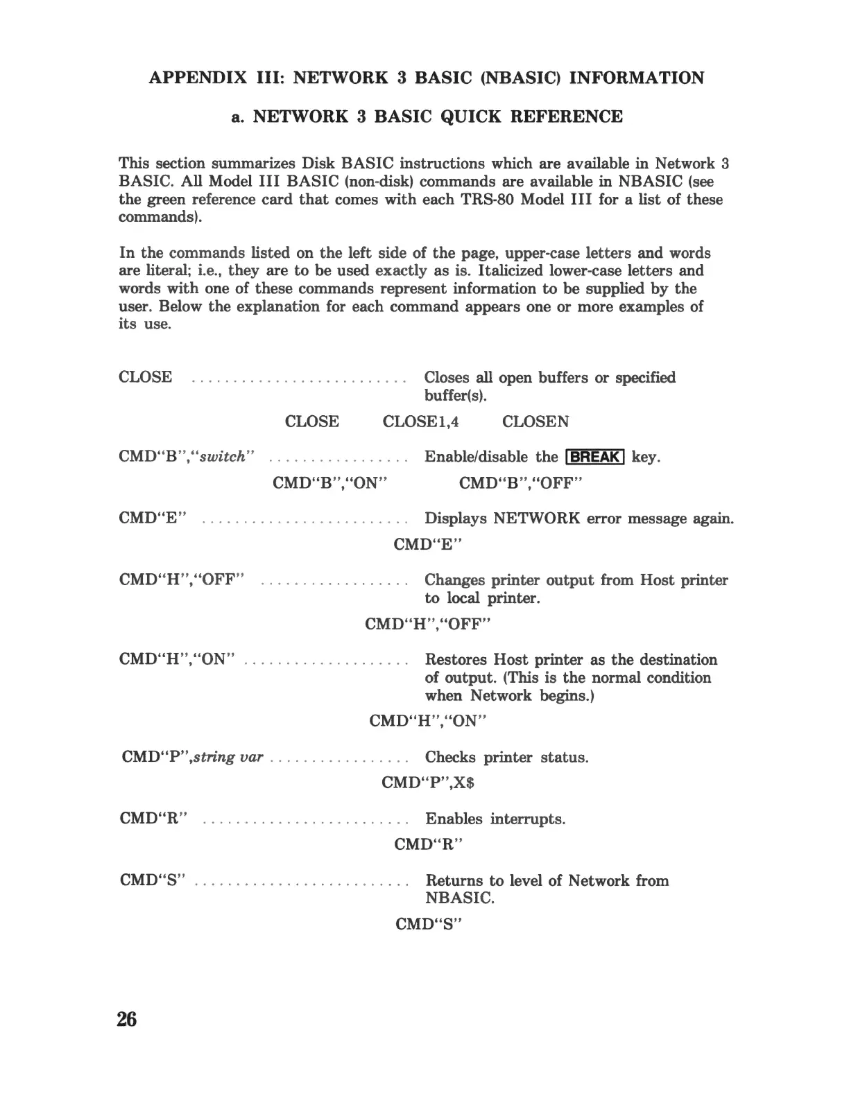 a. NETWORK 3 BASIC QUICK REFERENCE