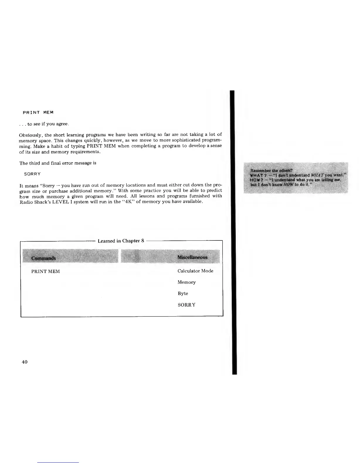 PRINT MEM when