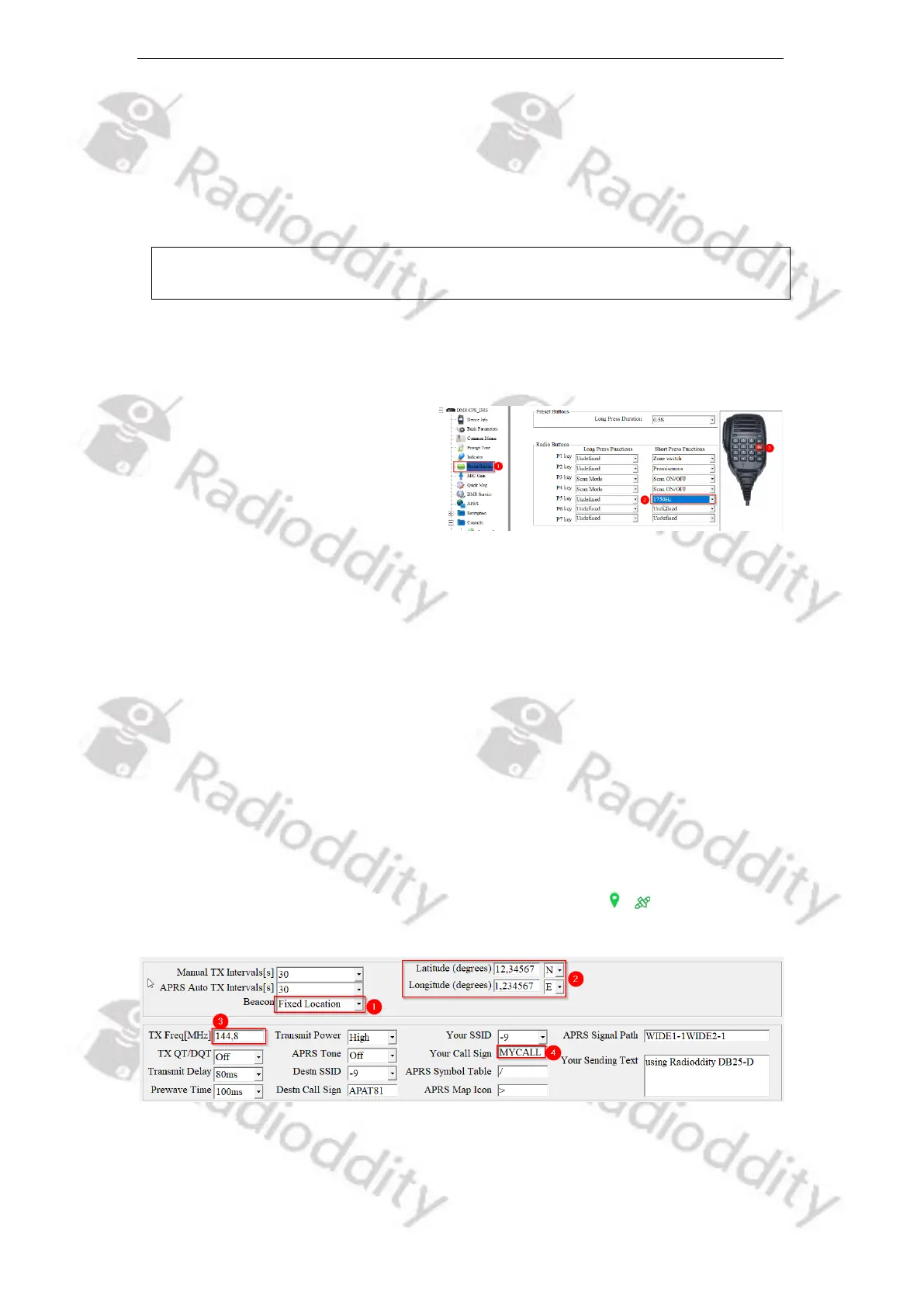Furthermore, set the analog APRS reporting frequency (3) according to your local
