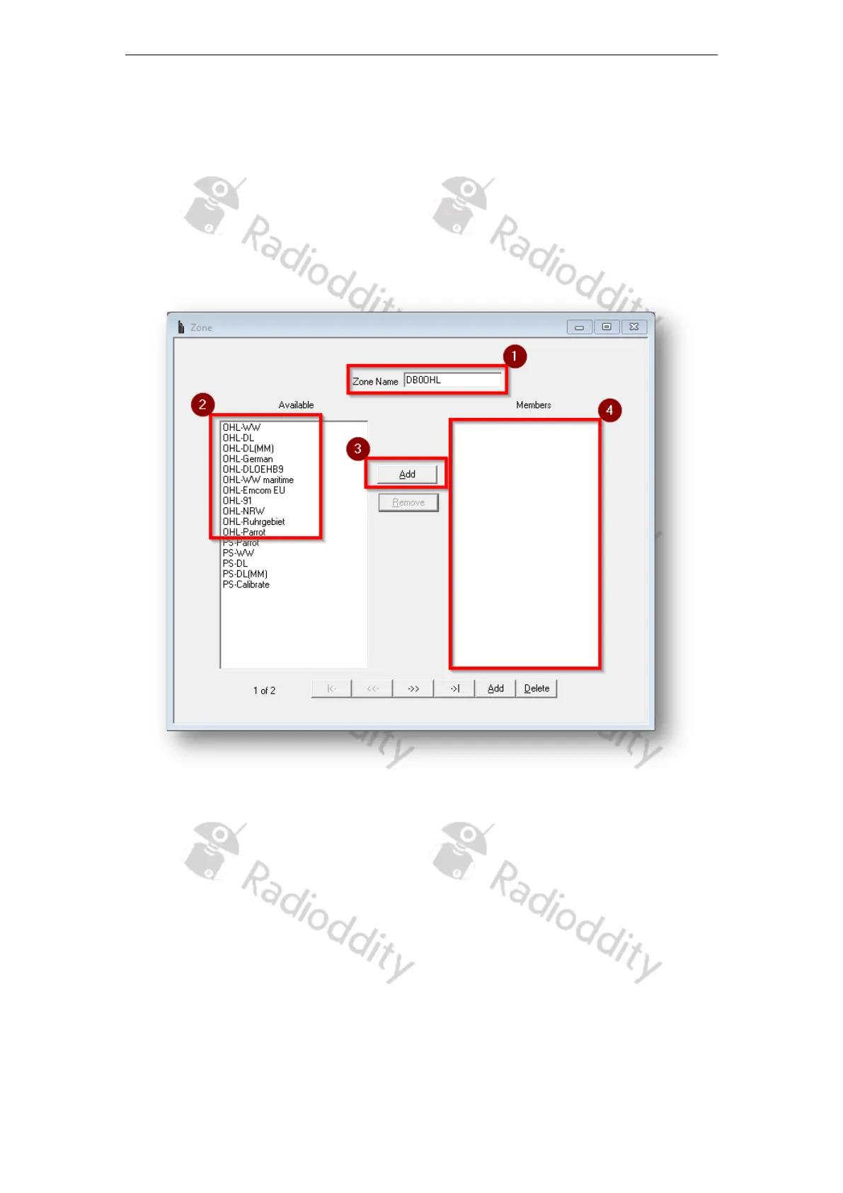 2. Then select from the list of available radio channels (2) on the left all those you