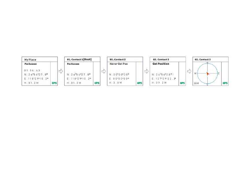 4. Press the [MENU] key to switch to the electronic compass interface and display the reference distance between two radios.