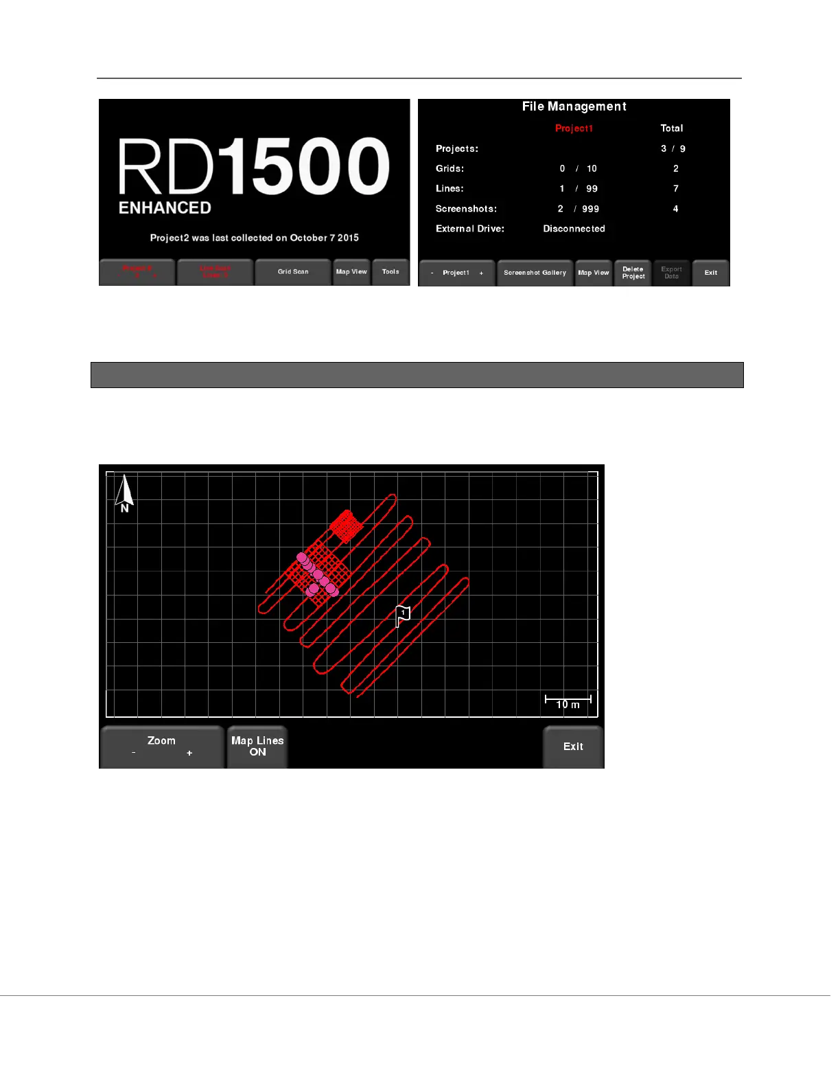 Figure 11-2: Accessing Map View from RD1500 Enhanced, either from the a) Main screen or b)