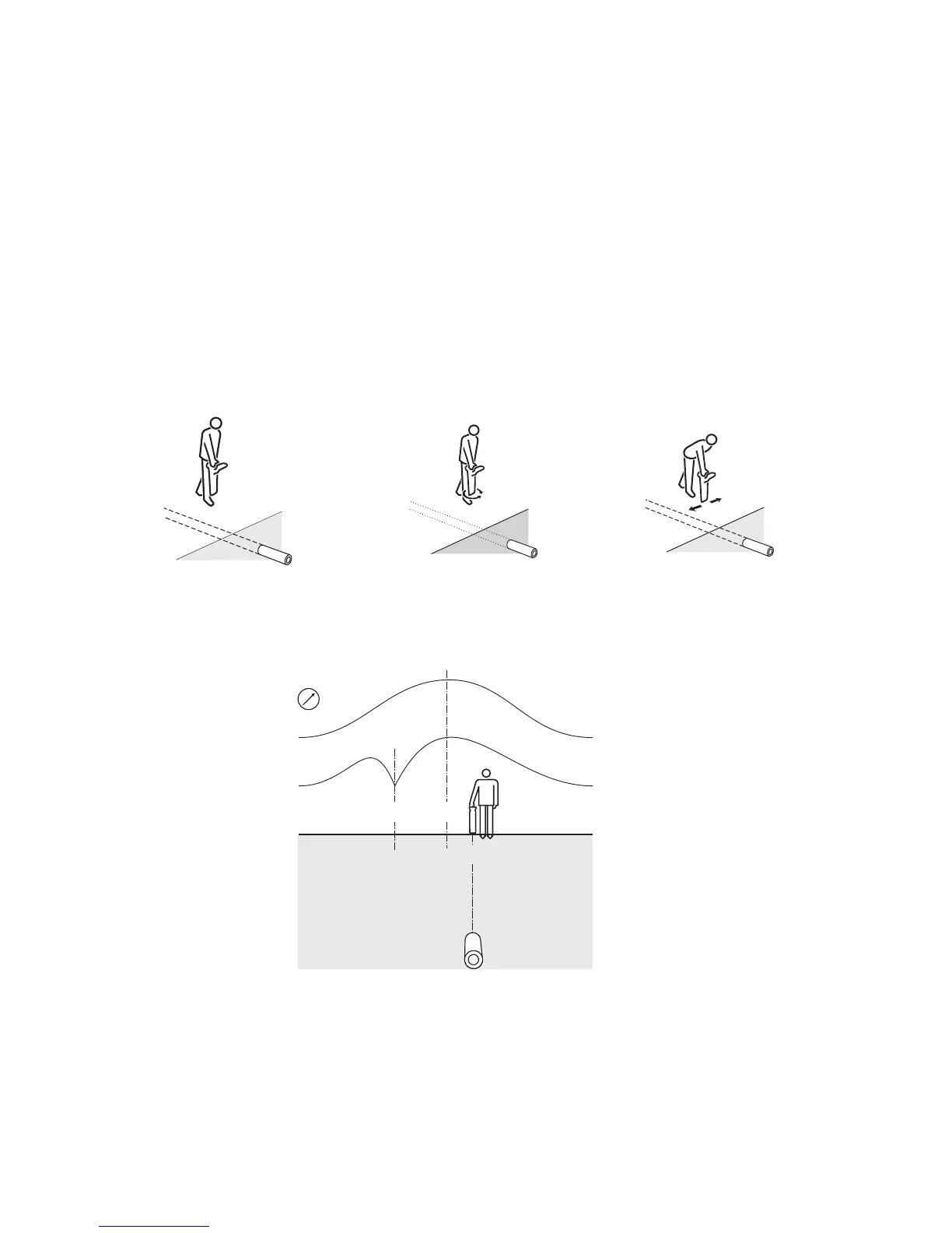 c) Hold the receiver vertical with the antenna just above the ground and move the receiver from side to side