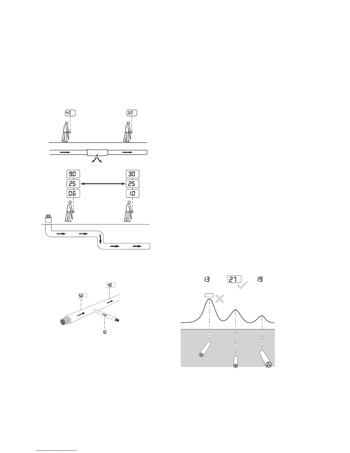 Measuring current provides useful information about the position of tees and bends. Measuring current after a