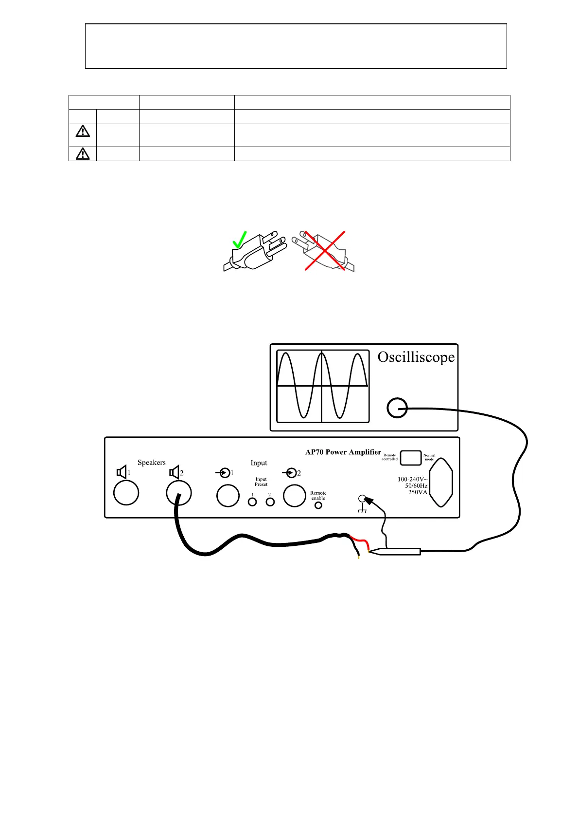 Ne connectez pas le câble de masse muni de la pince crocodile de l'oscilloscope à la sortie de l'amplificateur, mais