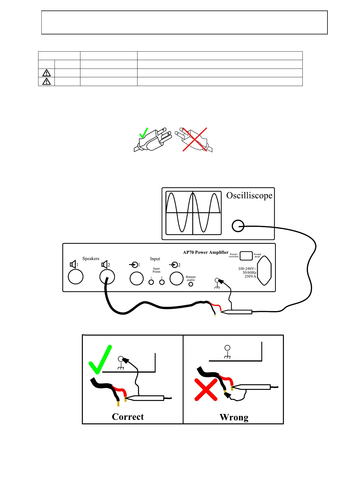 Anslut inte oscilloskopets jordalligatortestledning till förstärkarutgången, endast till jordterminalen på förstärkaren.