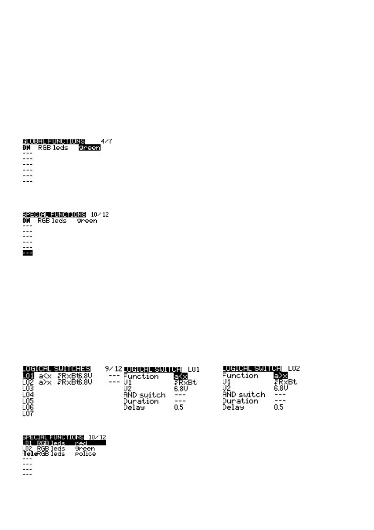 To set a colour/eect for each dierent model turn on the RGB leds funcon in SPECIAL FUNCTIONS and choose a