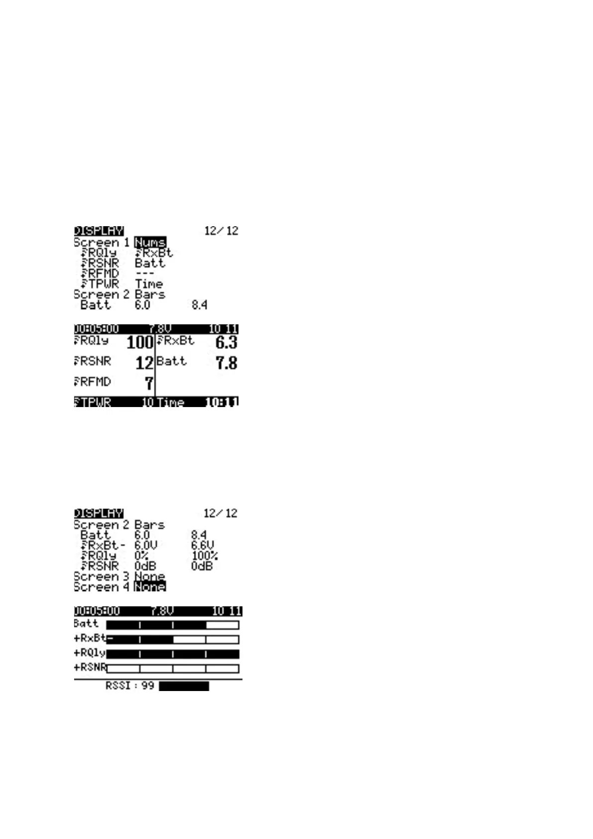 You can congure up to Four telemetry screens. You can choose one of the following display types for each
