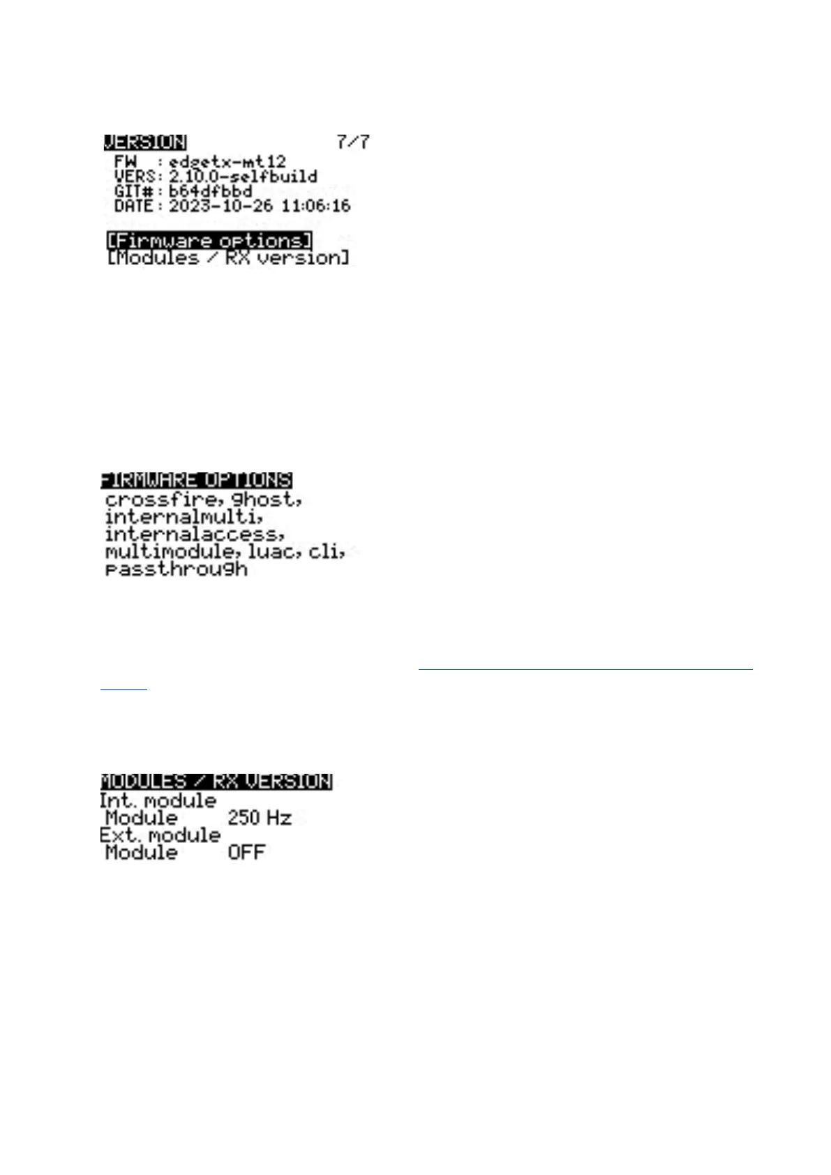 The Version screen displays informaon about the current EdgeTX version that is being used:
