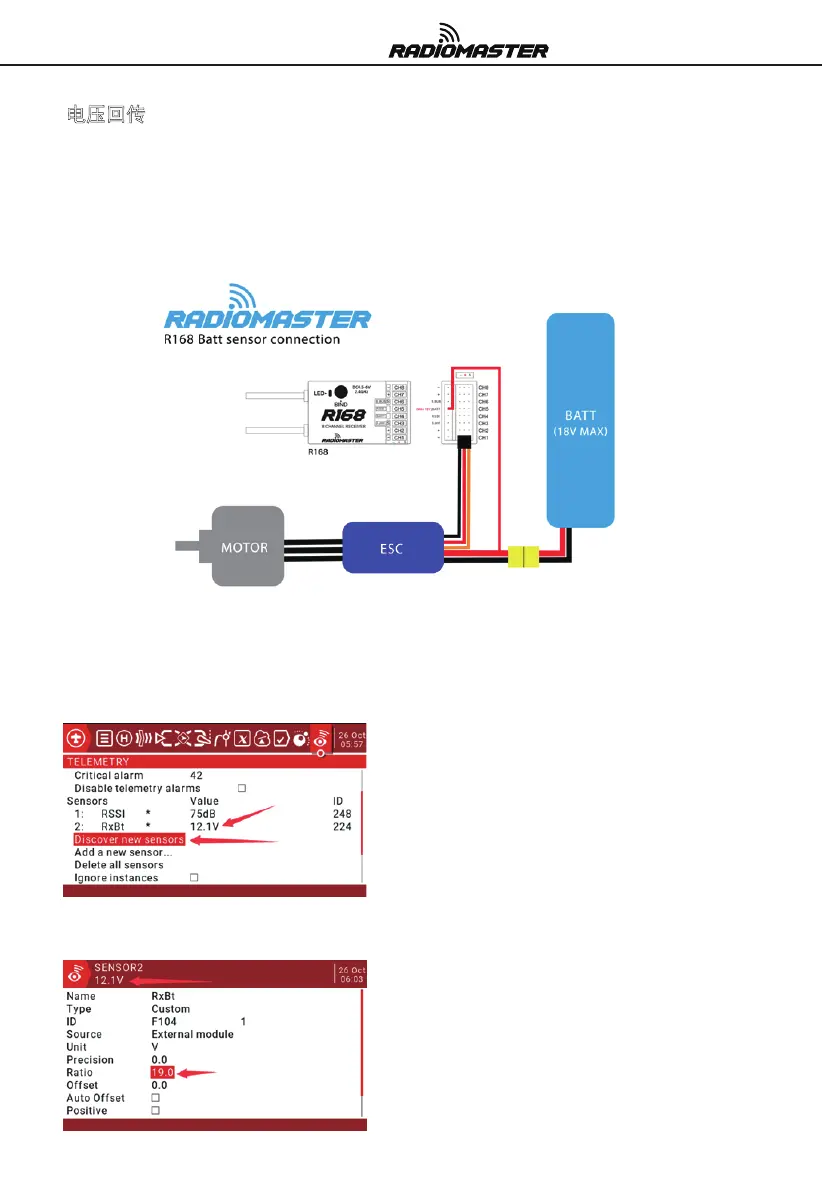 3. 扫描回传项目:第一次使用需在遥控器TELEMETRY页面中选