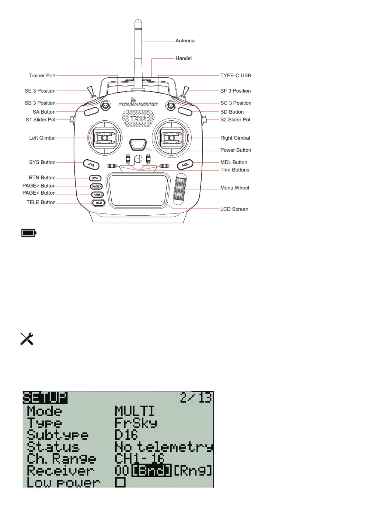 The TX12 comes with a CC2500 single-chip multi-protocol internal RF module, which is compatible