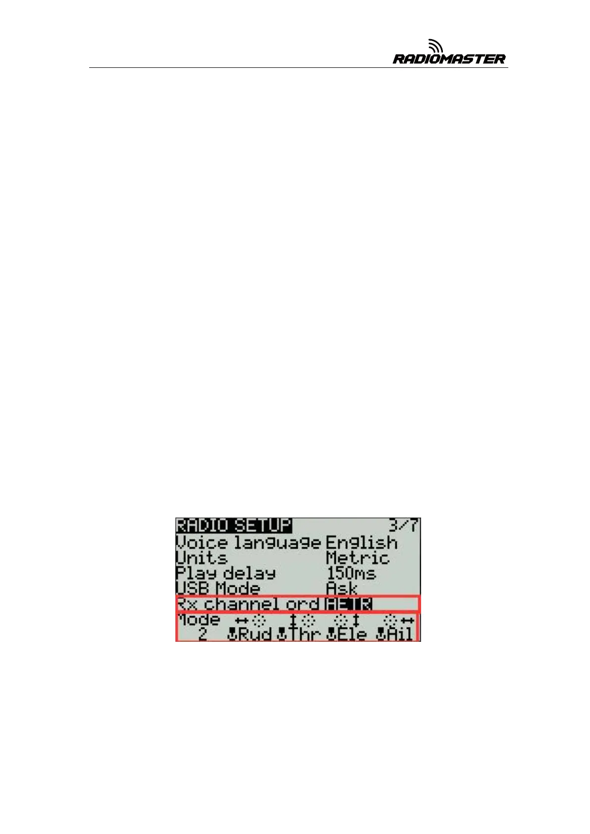 module of the RadioMaster TX12 radio control is AETR, in the Default channel order