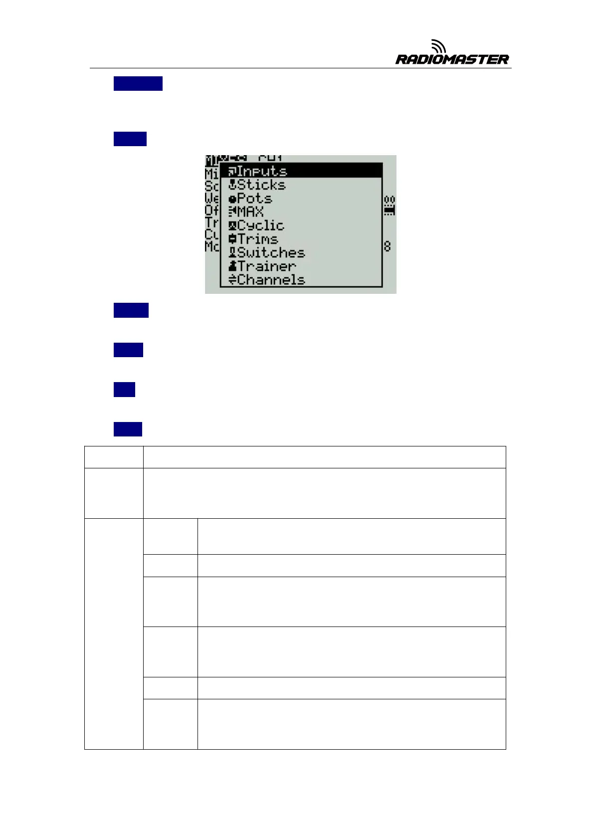 Positions above 0 (midpoint) follow the gimbal output, operations