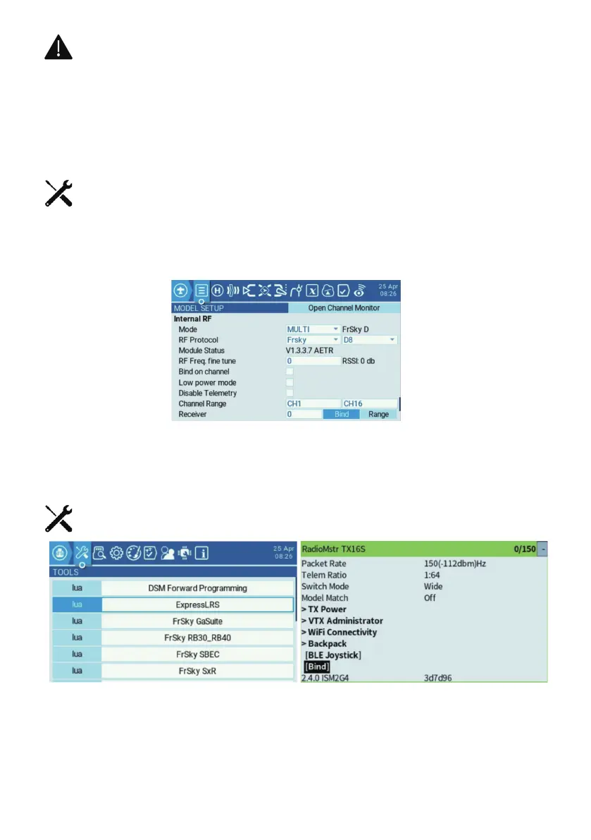 3.Schalten Sie das Funkgerät ein, geben Sie ExpressLRS LUA ein und wählen Sie Binden.
