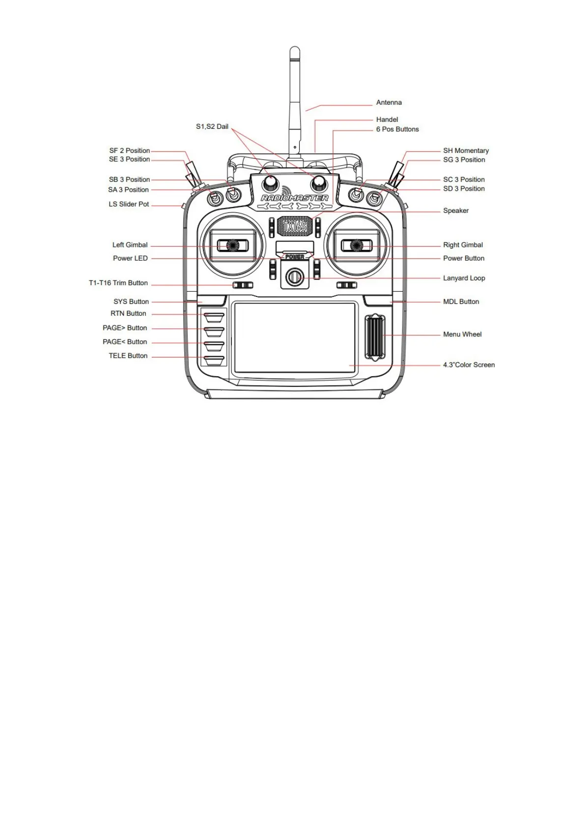 Flight mode switch: SE (↑Norm, -Idleup1, ↓Idleup2)