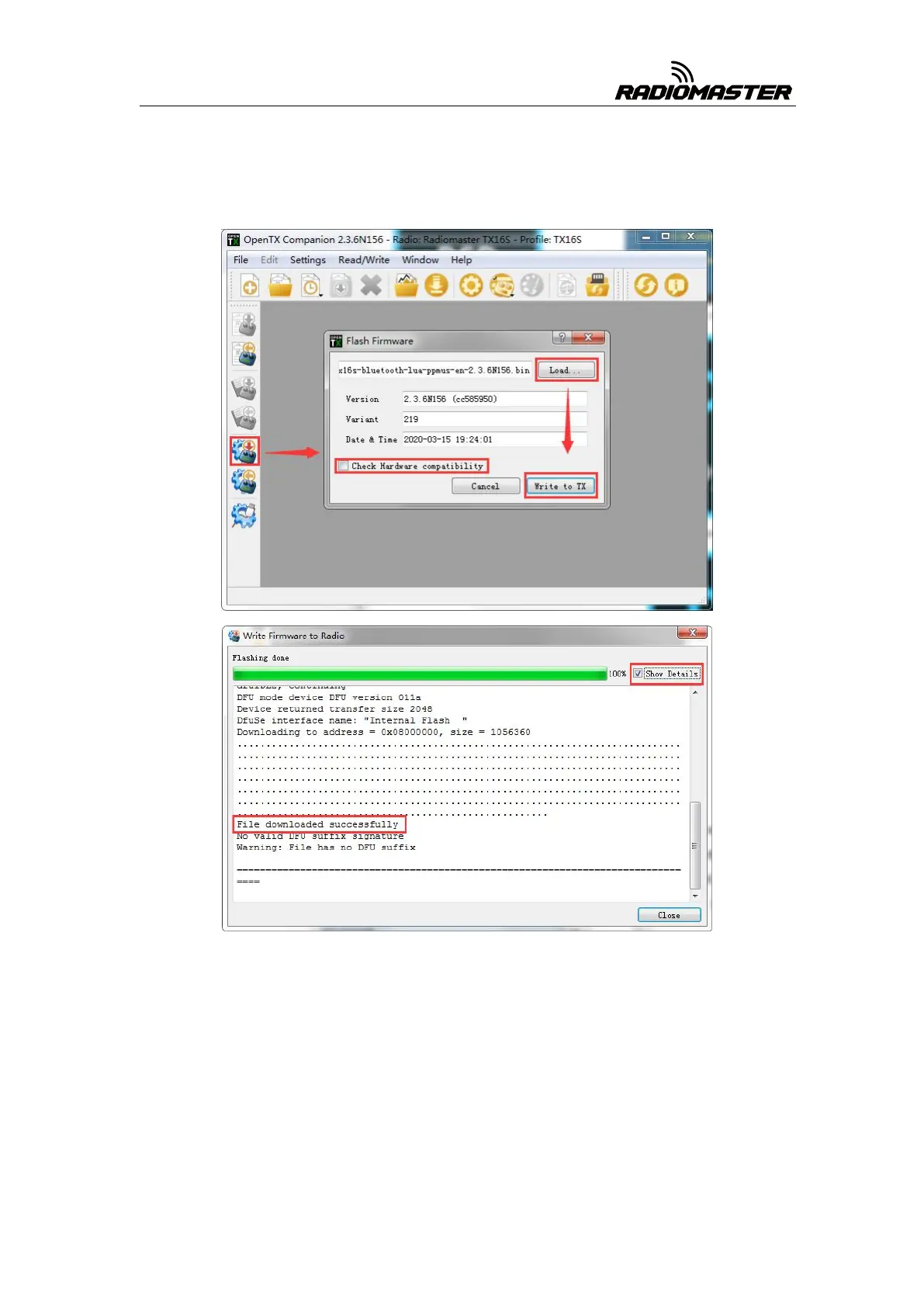 completed, you can use OpenTX Companion to write the firmware to the remote