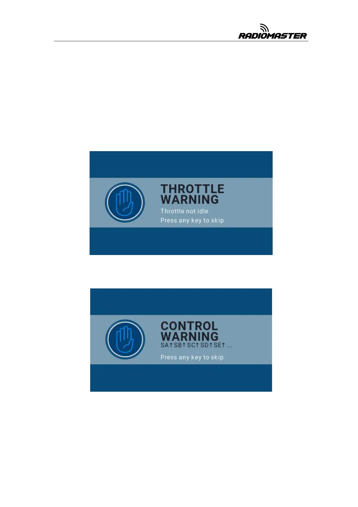 press any key to skip. You can also turn off the throttle state option in the MODEL
