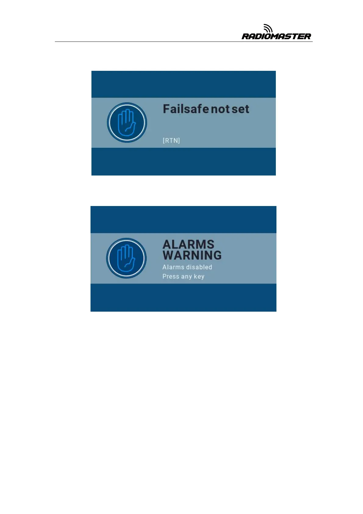 Failsafe not set warning: This is a warning that the remote control runaway