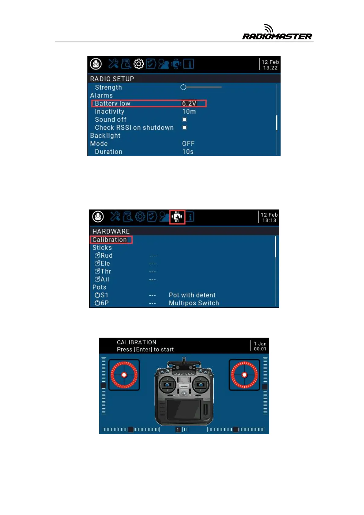 A. In the system settings, scroll to the HARDWARE page, select the Calibration