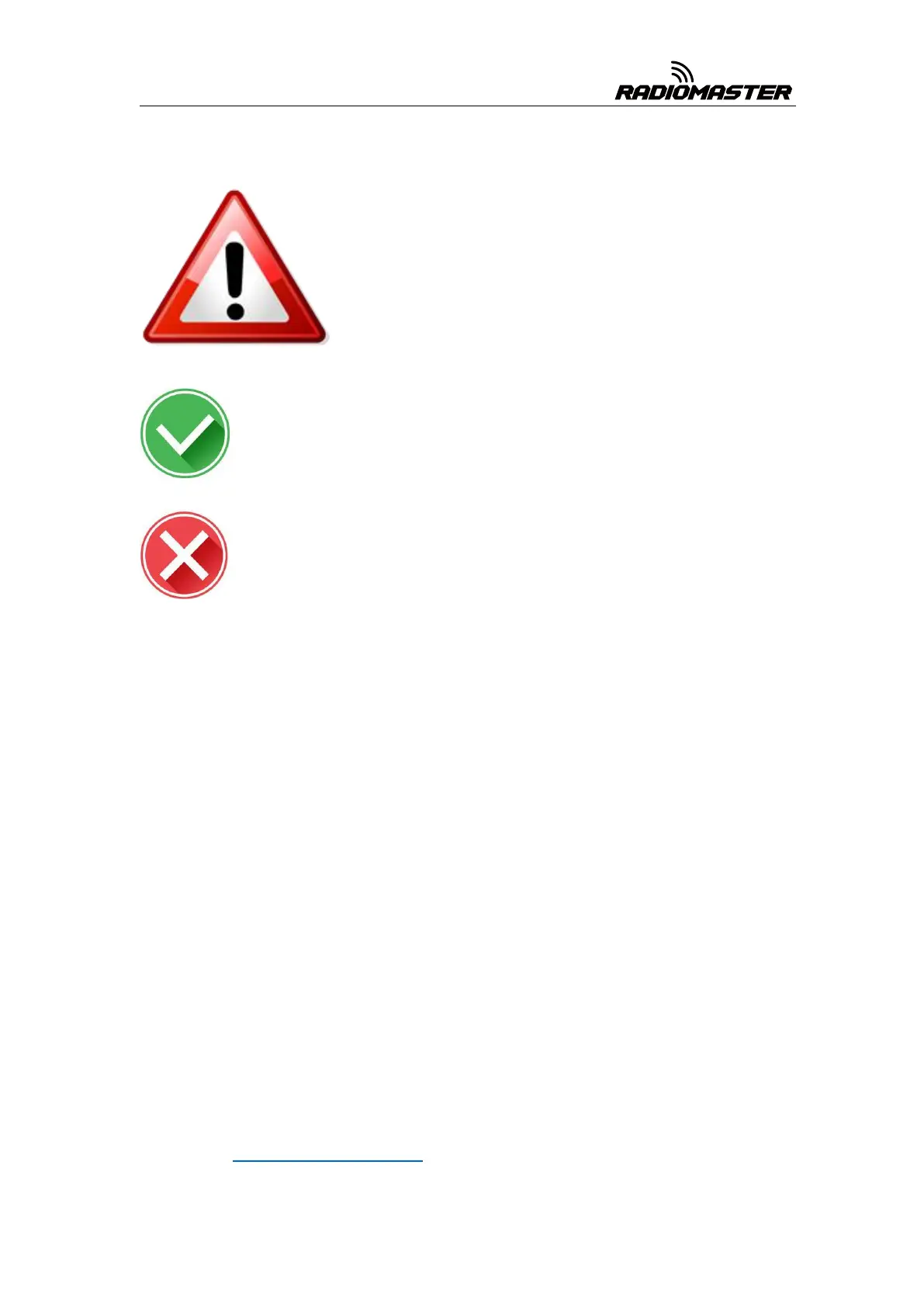 RadioMaster is not responsible for any adverse consequences caused by using or