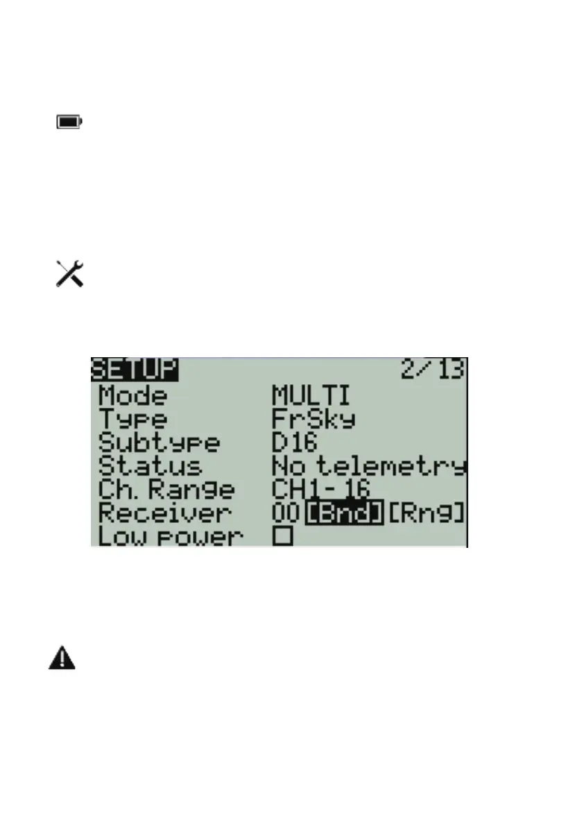 · [Rng]选项可将功率降低至1/30,以方便测试遥控距离。