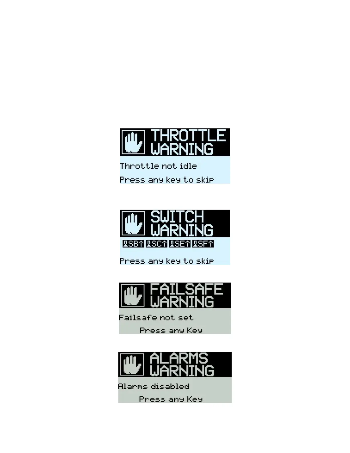 any key to move forward Throttle warning: This is a warning that the throttle is not at the lowest