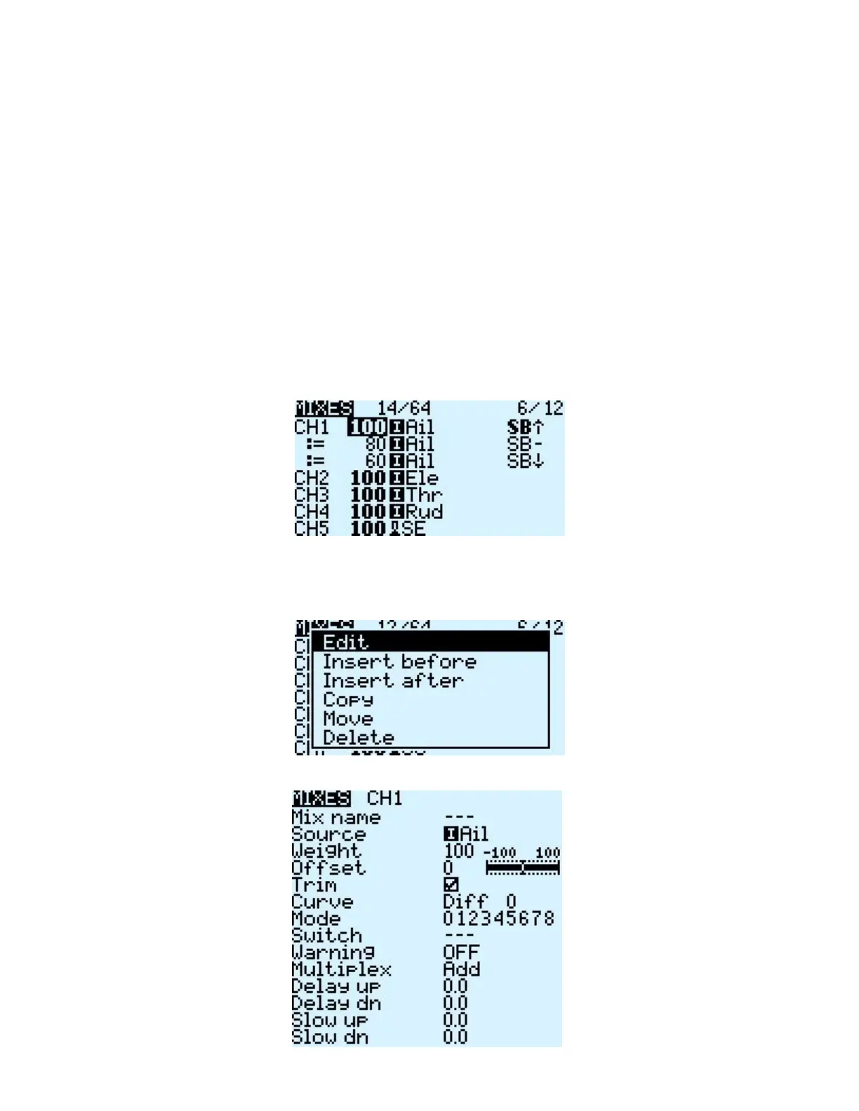input by the Ail gimbal, and the three states of the SA switch are used to switch three travel