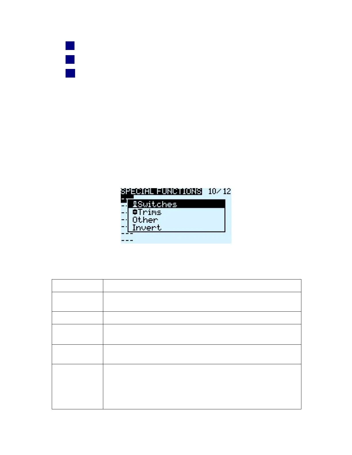 Each model can have 64 special functions. In addition, there are 64 global settings that are