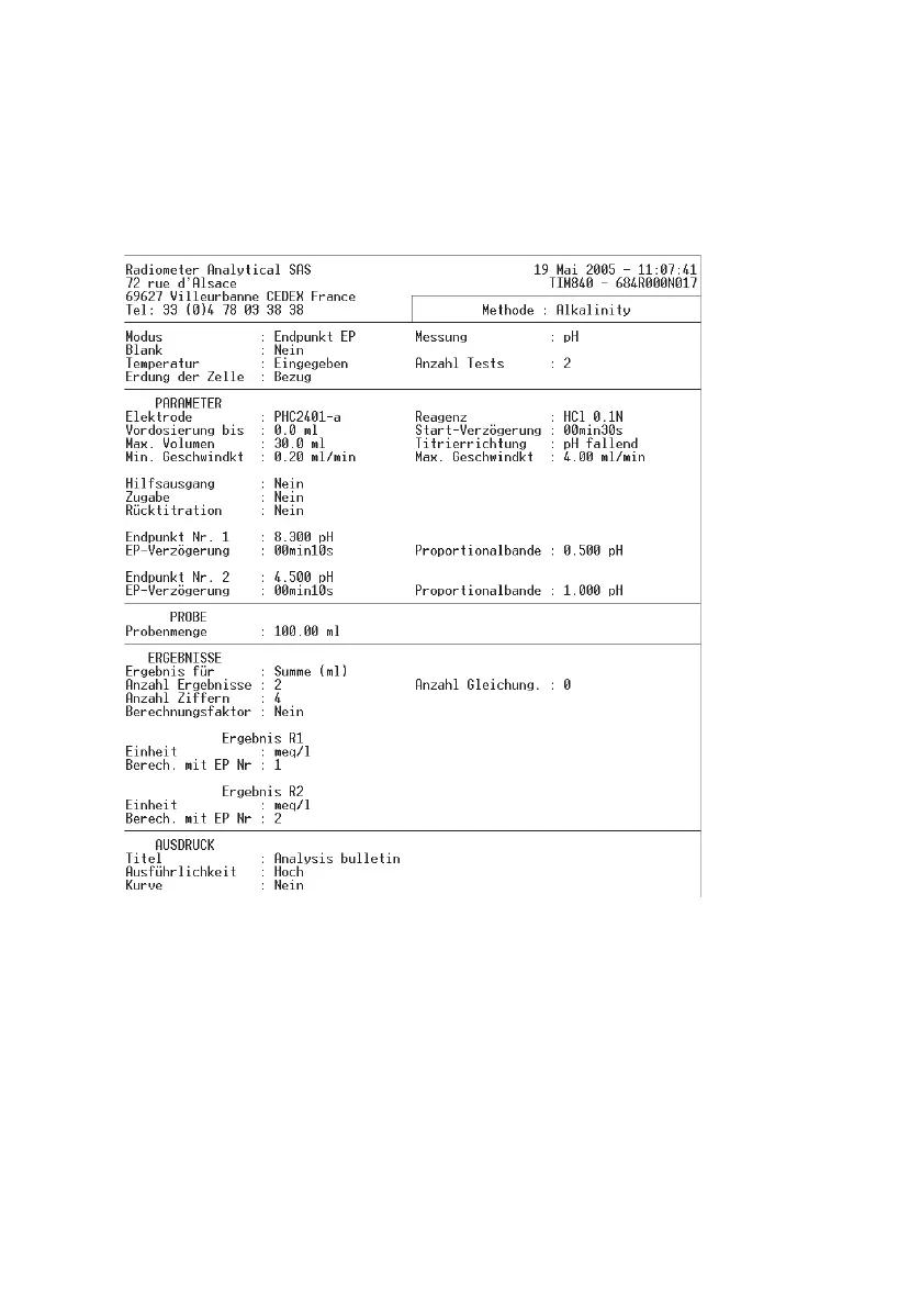 dann Print betätigen, um eine Zusammenfassung der Parameter des
