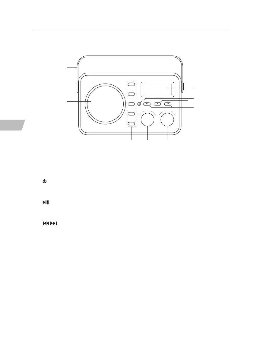 Valitsee DAB-, FM-, Lisälaitetulo- ja