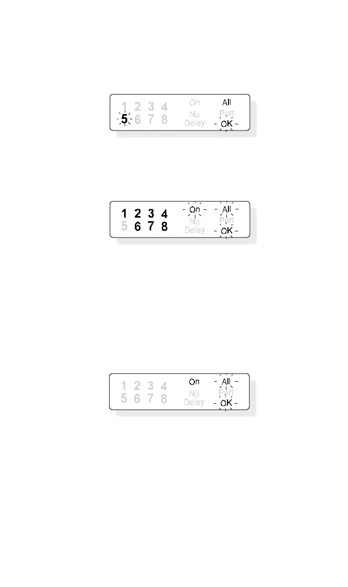 5. Exit now or turn the system on with no delay by pressing 9