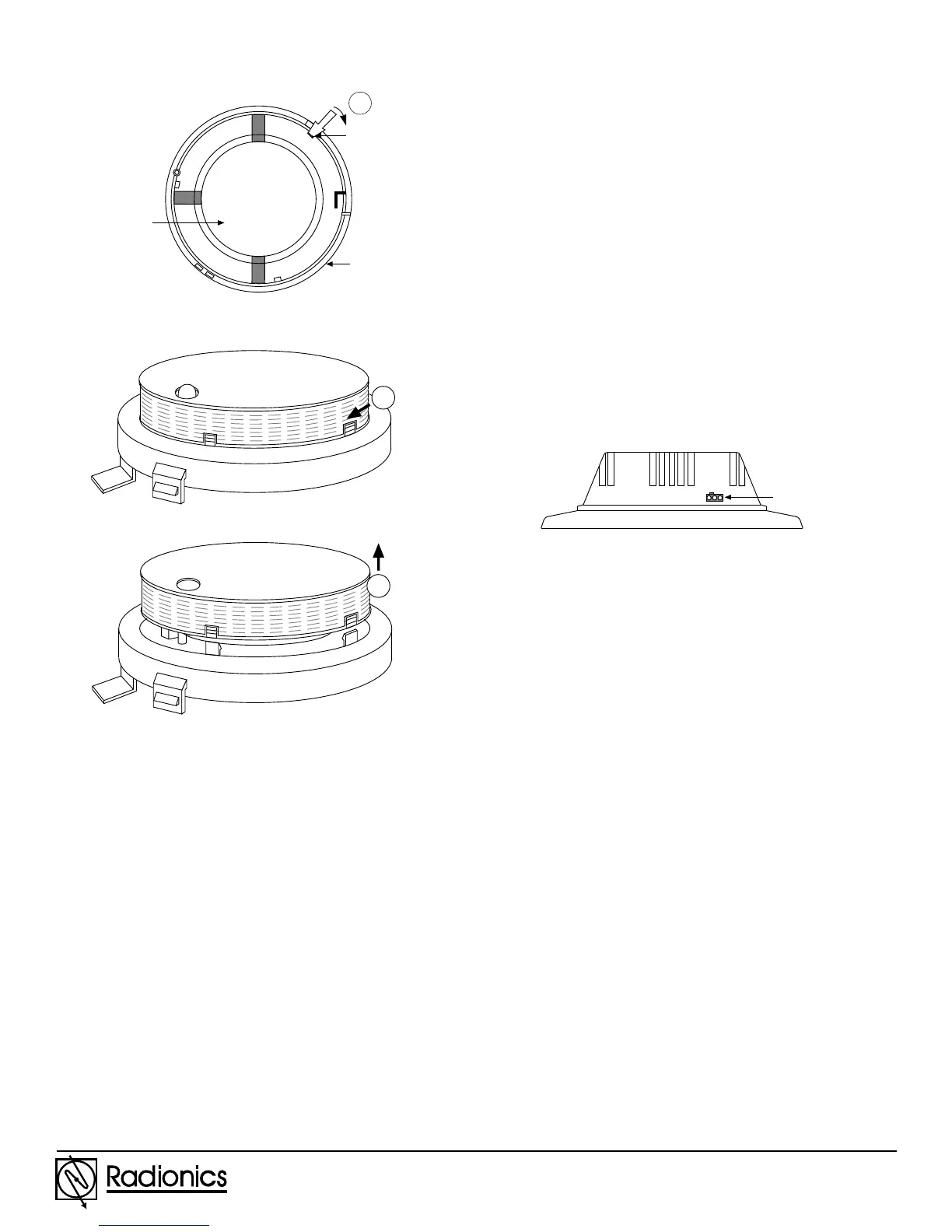 - Replace the detector’s cover. Be careful to line up the holes for the LED (and ther-