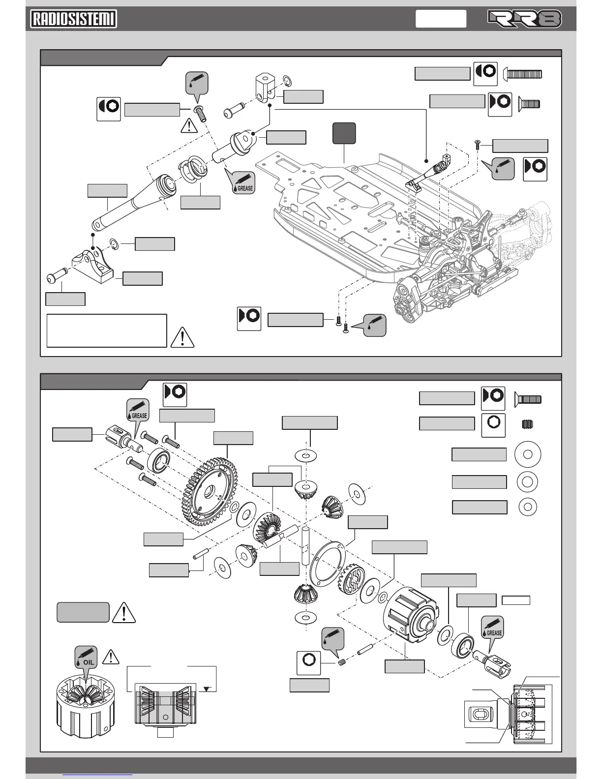Radiosistemi rr8 - Chassis Structure and Center Drivetrain; Front Chassis Brace Installation; Center Differential Assembly
