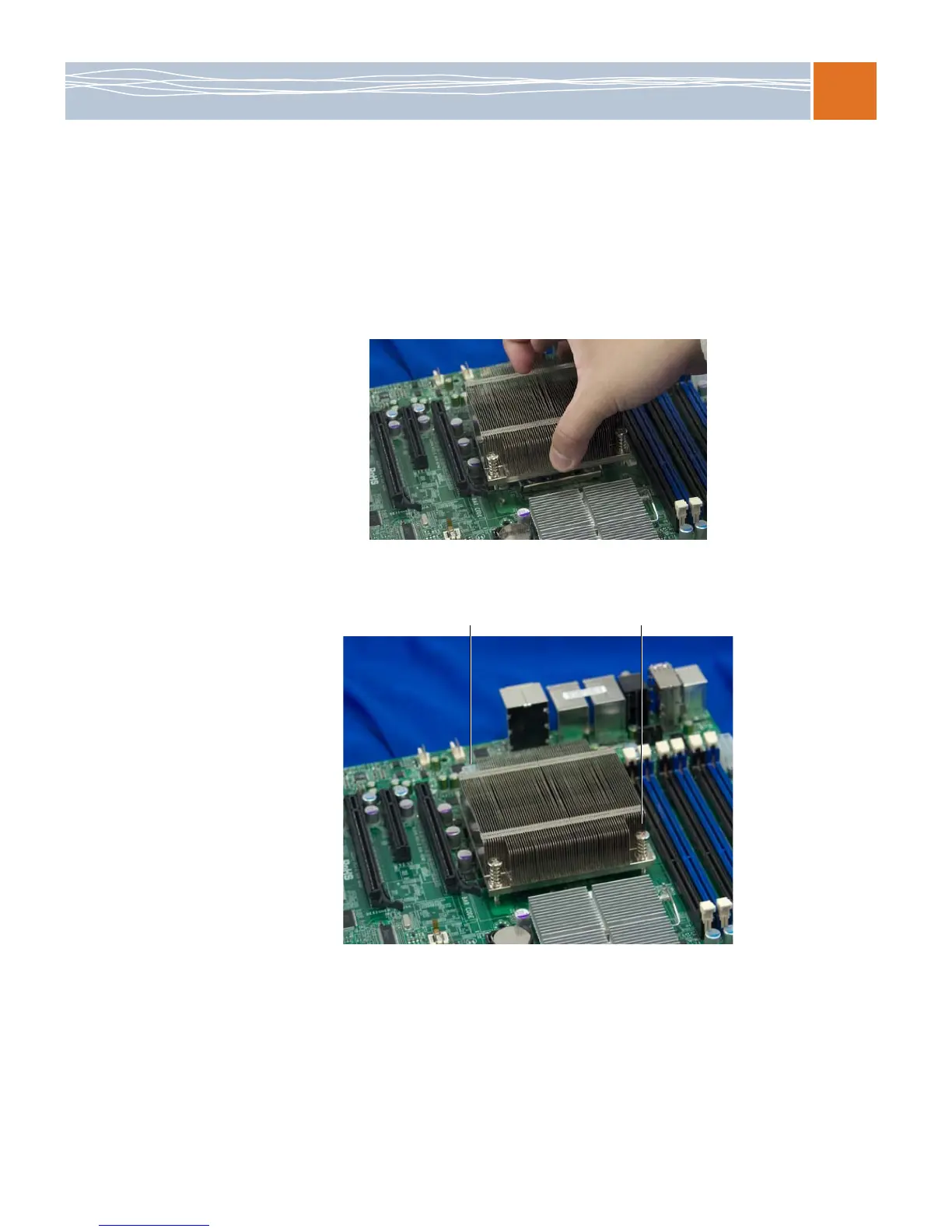 This procedure demonstrates how to install a passive heatsink. To install an active heatsink