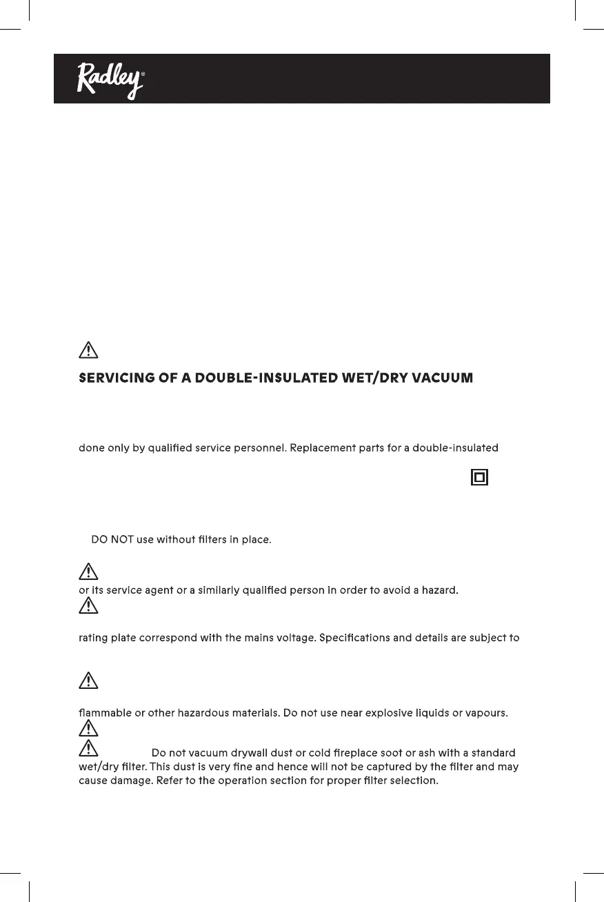 Wet/Dry Vacuum must be identical to the parts they replace. The double-insulated Wet/