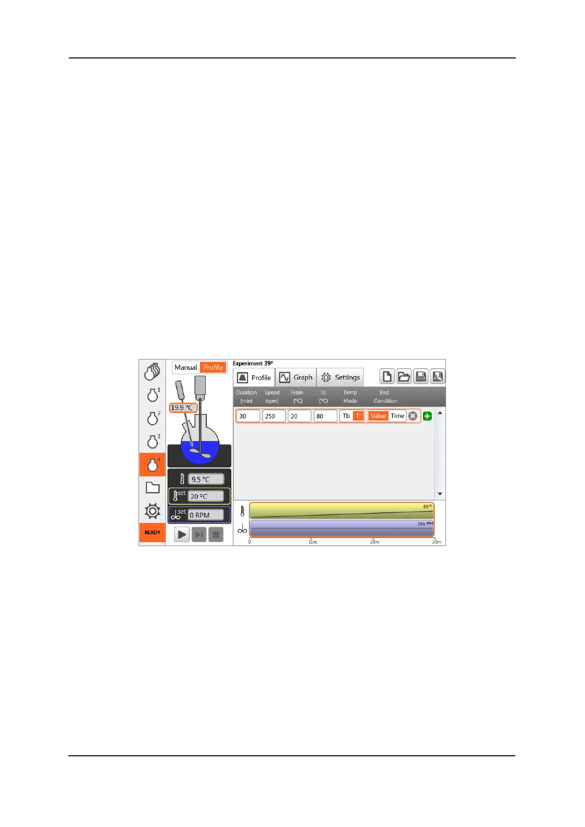 In this case, the system will heat to 80 °C in a calculated linear profile determined by the set duration