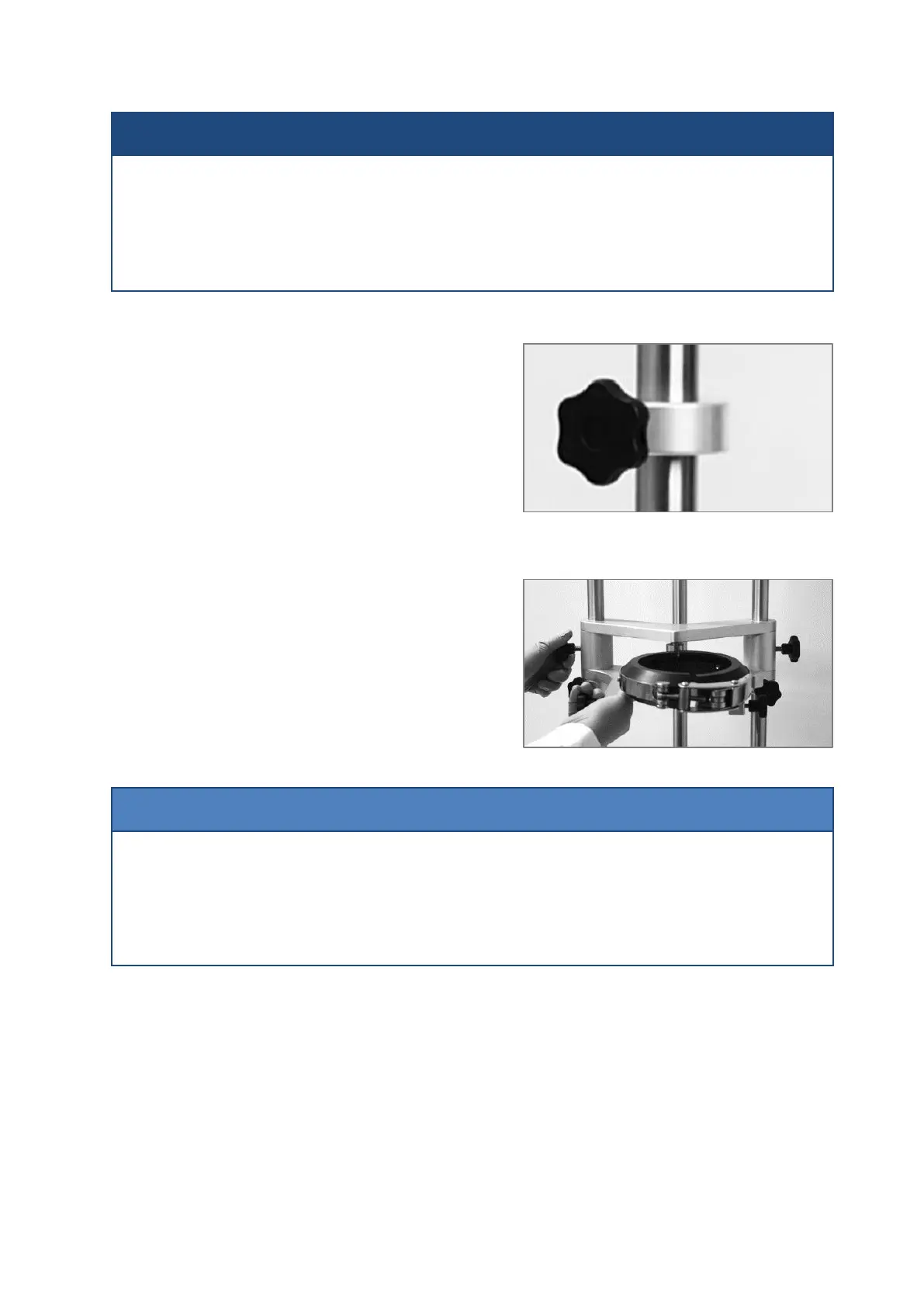 place by hand-tightening the two locking knobs.