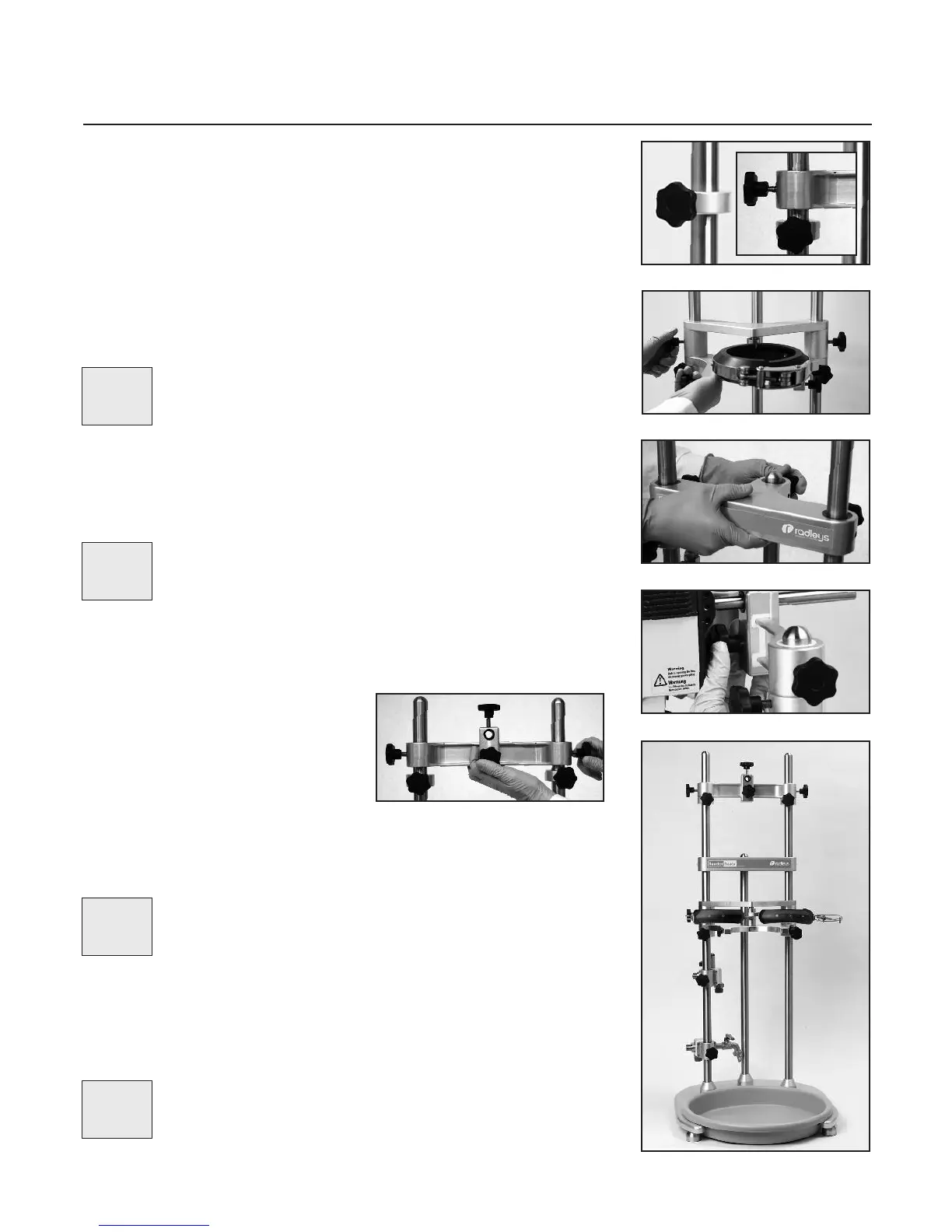 and tightening the locking knobs to secure. Then slide the Vessel Support Clamp onto the