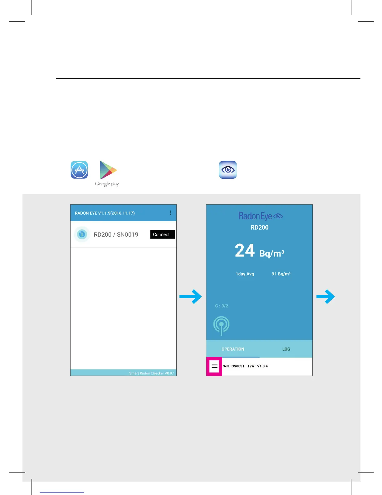 Radon Eye RD200 - App Guide; Finding and Downloading the App; Connecting to Radon Eye