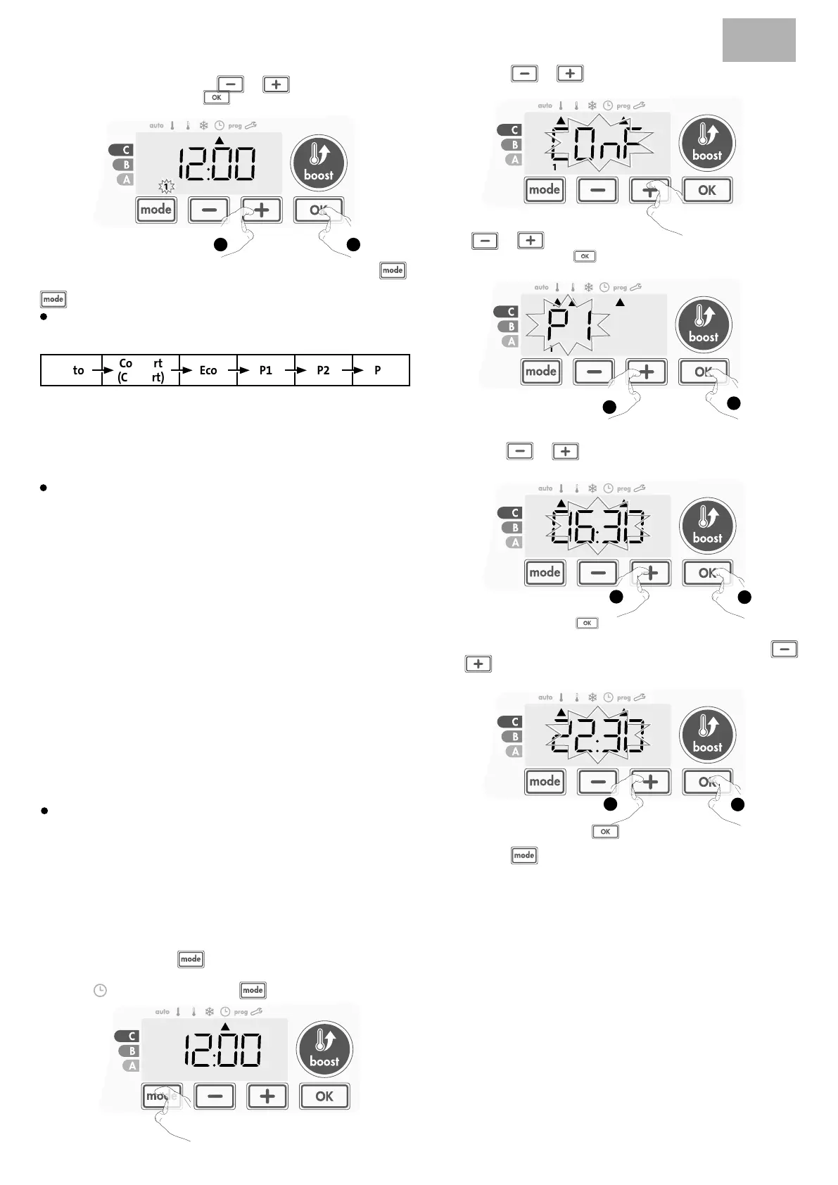 À partir du mode Auto, Comfort (Confort), Eco ou Frost protection
