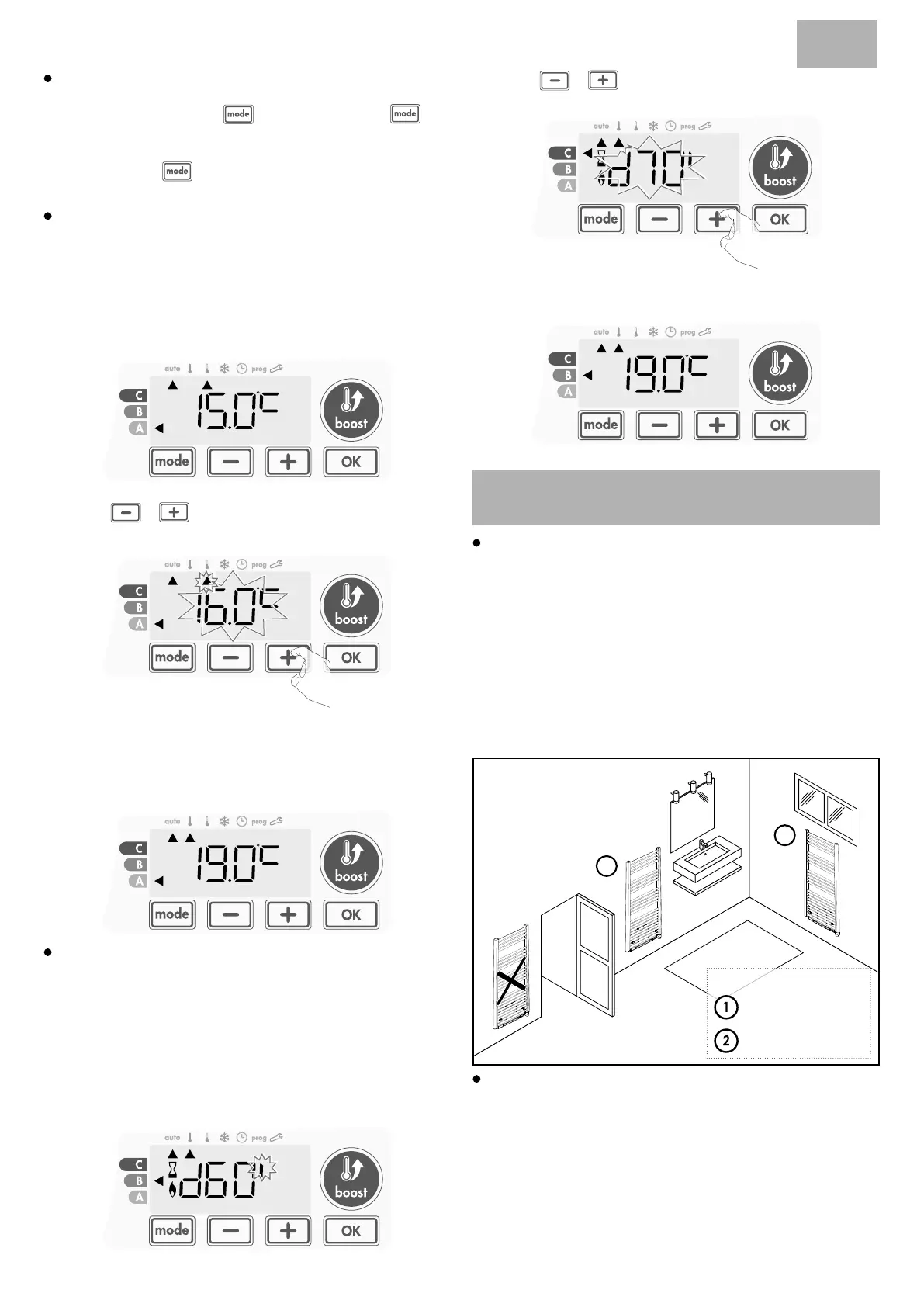 Comfort 19,0°C en er loopt een automatische boostcyclus.