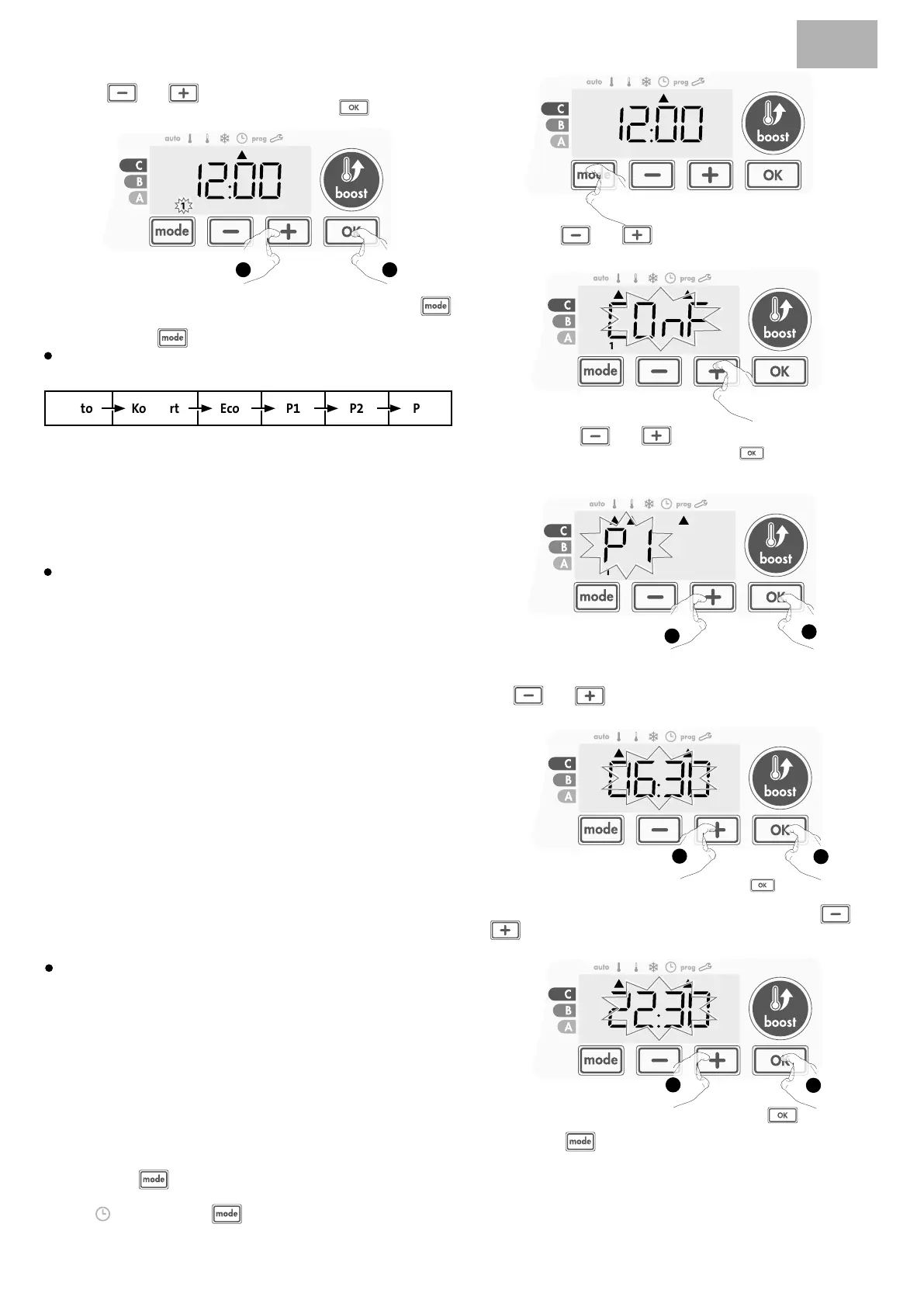 5- Die Endzeit von P1 (Voreinstellung 22:00Uhr) blinkt. Mit
