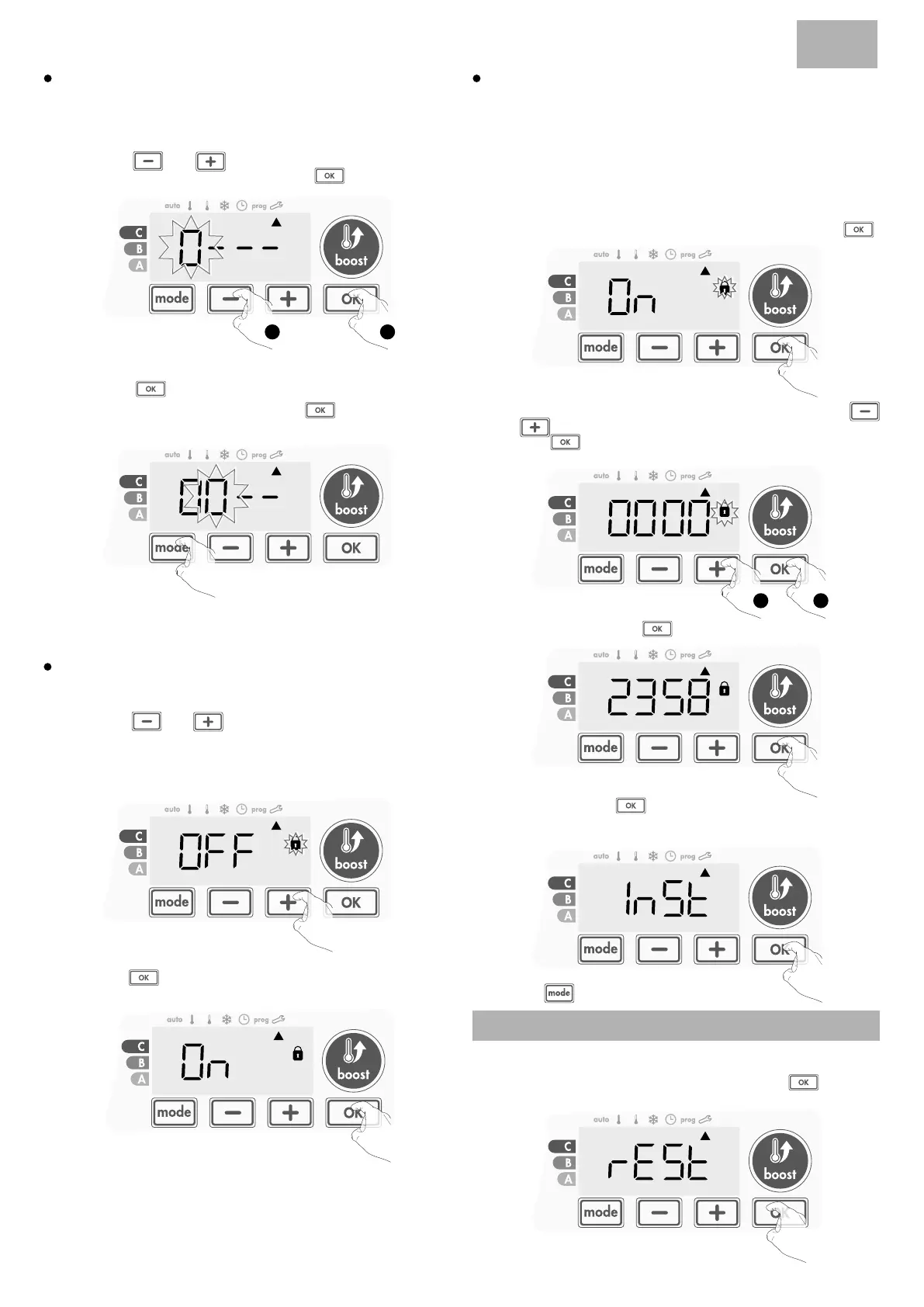 1- Drücken Sie bei aktivierter PIN-Code-Einstellung auf . Rest er-