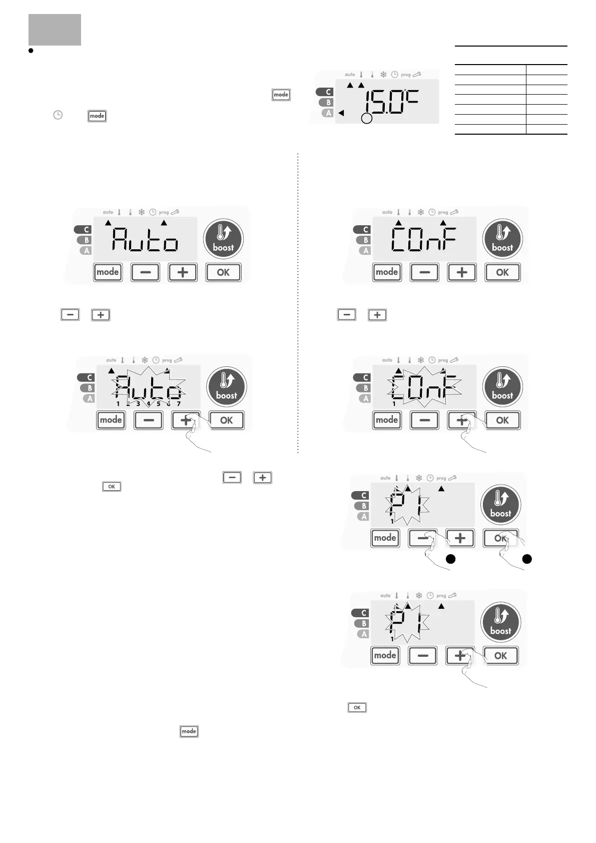 From Auto, Comfort, Eco or Frost protection mode, then press