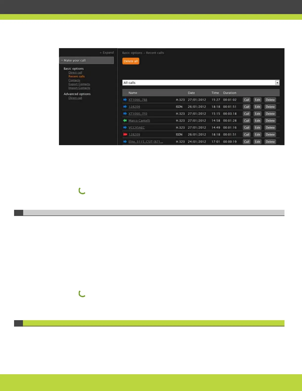 remotely by accessing the web interface and navigating to Make your call > Contacts.