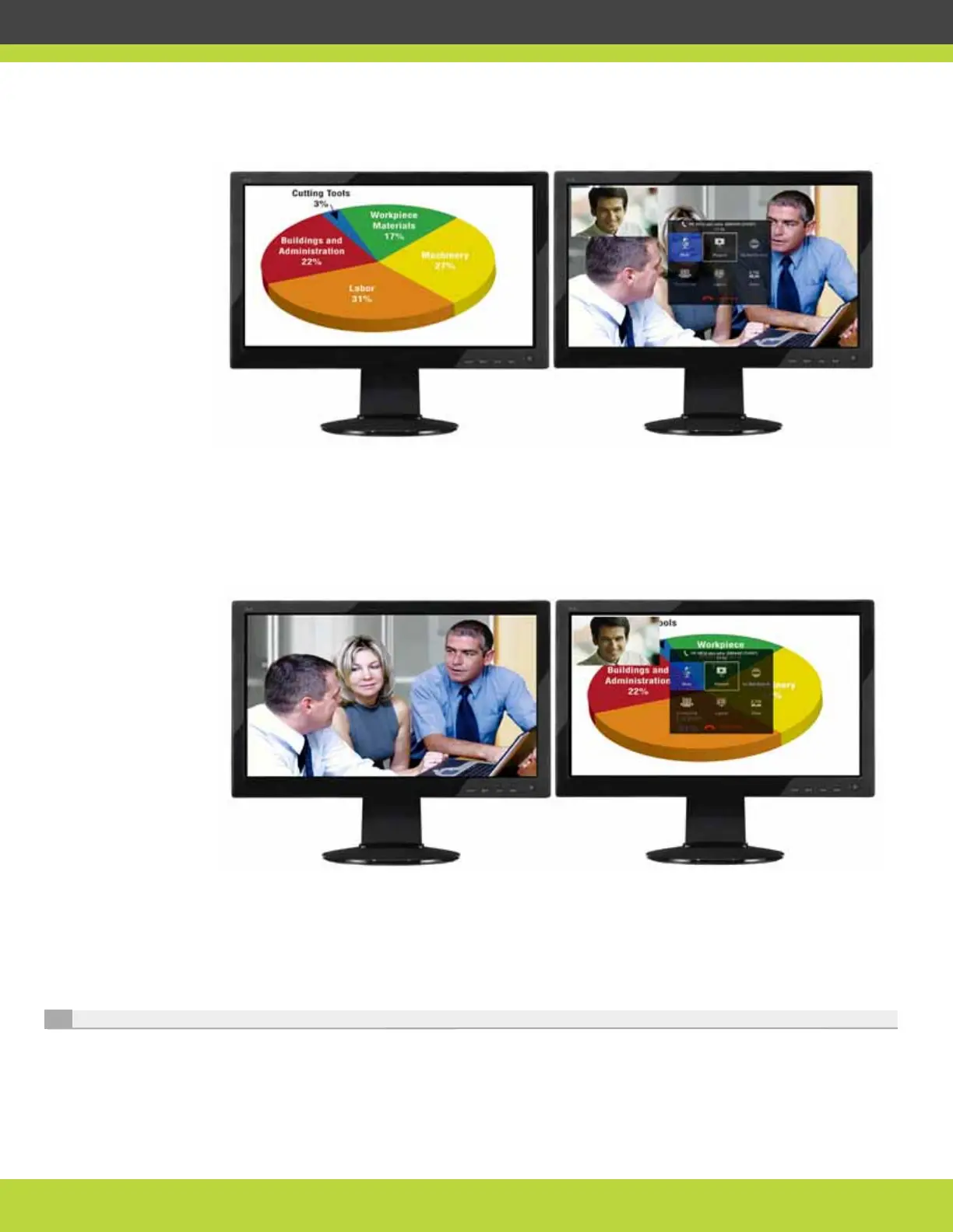 shows the received video. HD2 shows the system menus, the presentation (local or remote) if