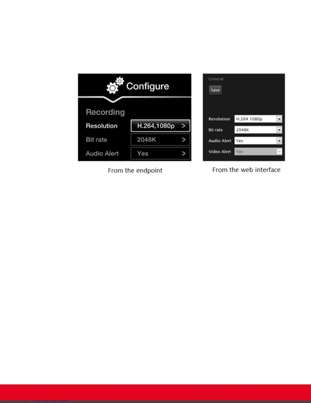 From the endpoint's main menu, select Configure > Recording.