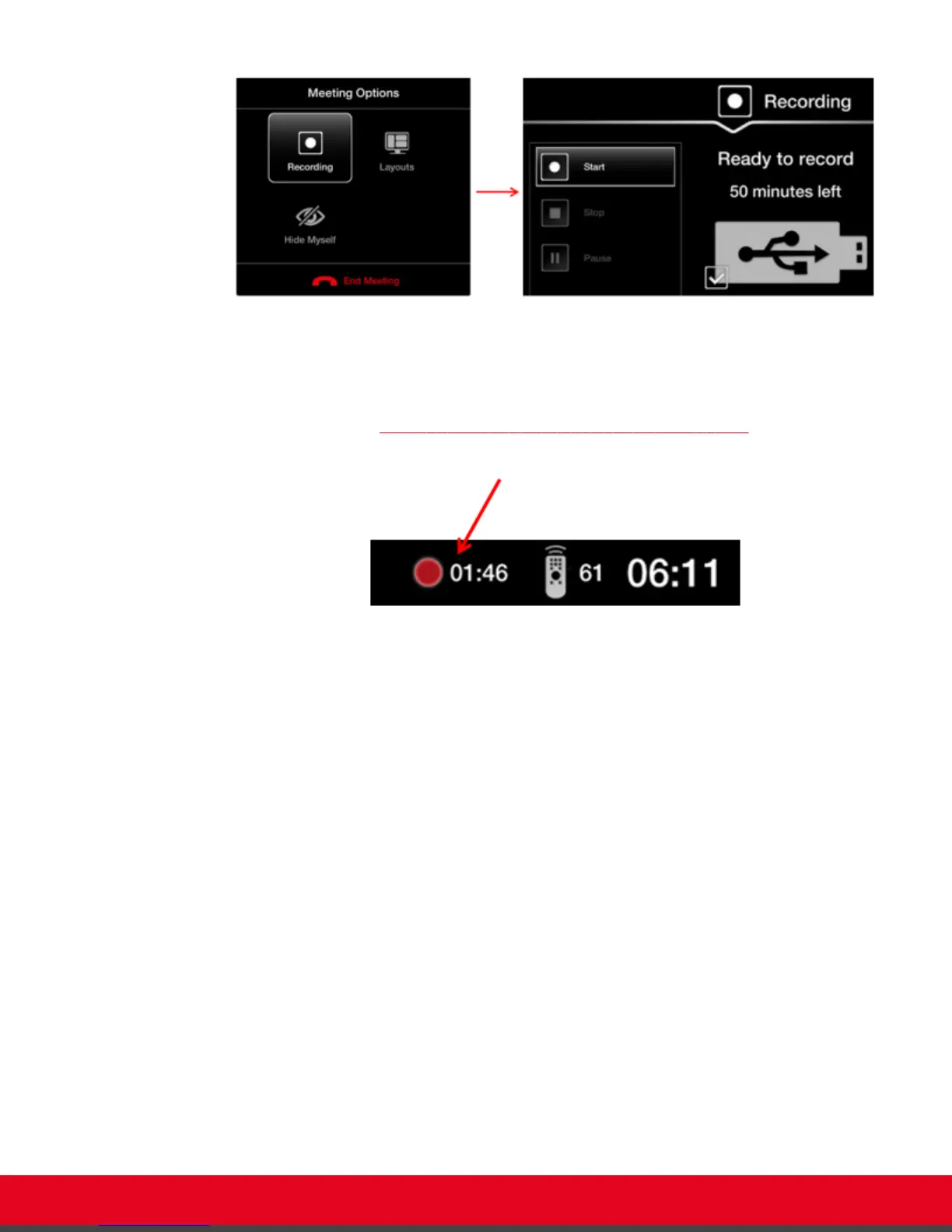 The recording icon appears at the top of the endpoint interface, next to the remaining time