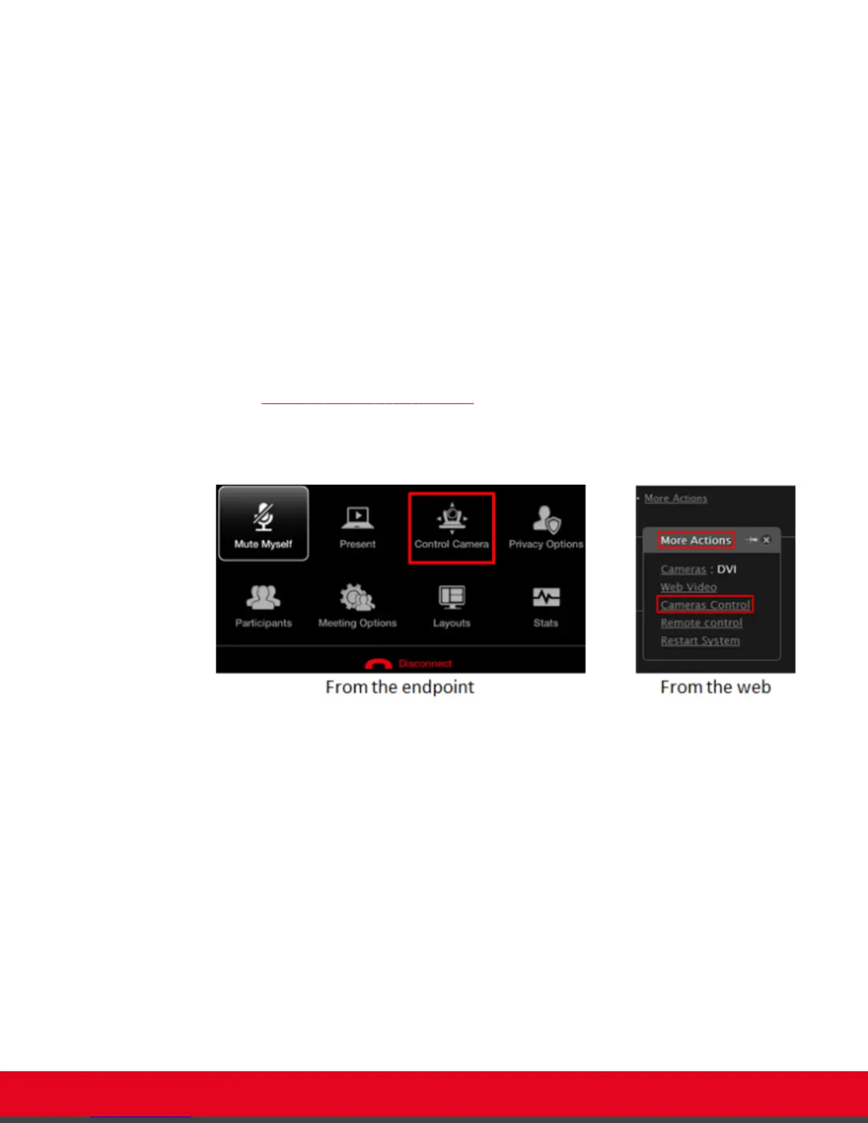 From the endpoint's main menu, select Control Camera and press ok/menu.
