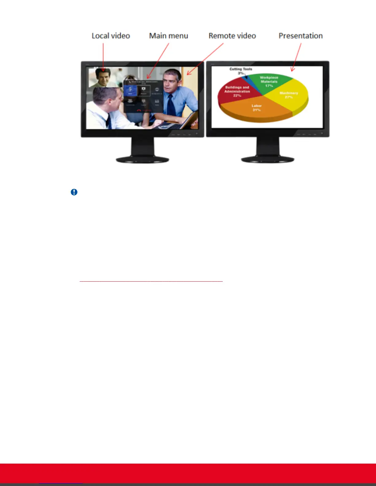 Your system administrator configures the monitors to show one of these layouts when you are in a call